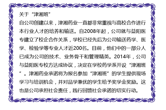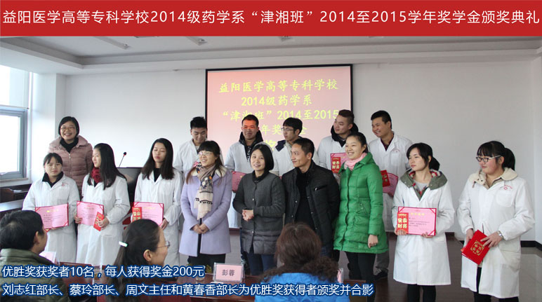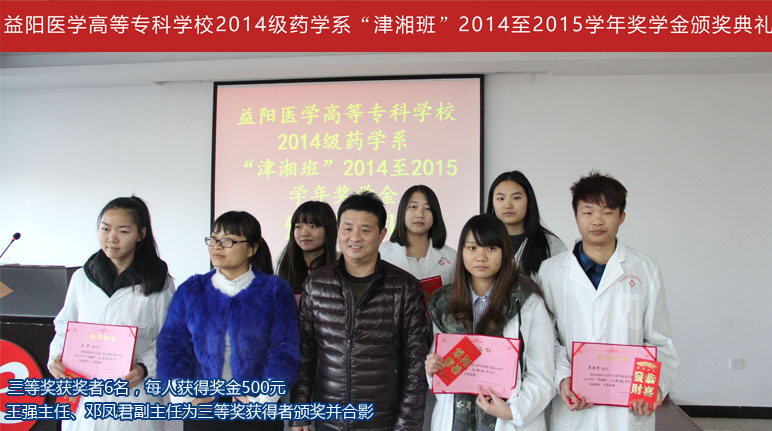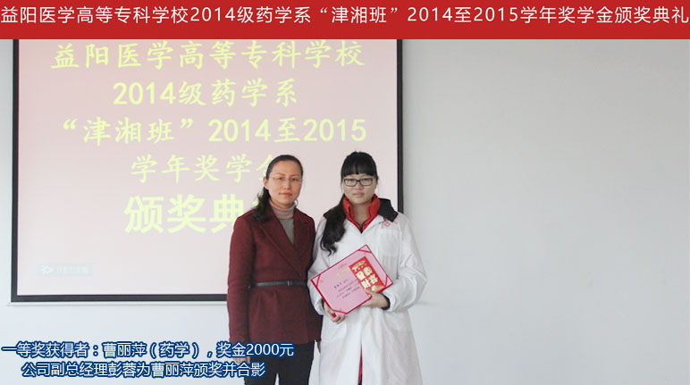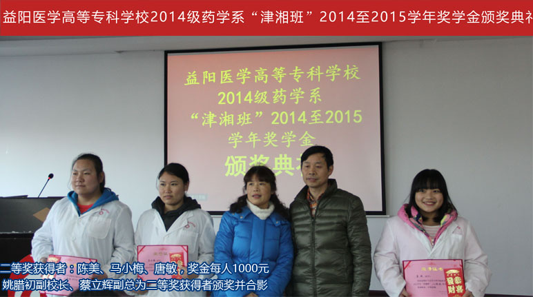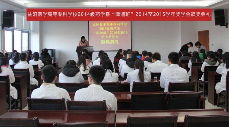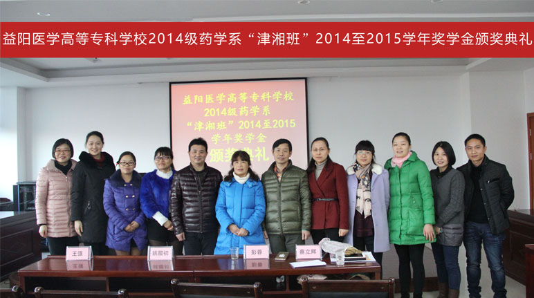2015年12月17日下午三時許,益陽醫(yī)學(xué)高等專科學(xué)校(下文簡稱為“益陽醫(yī)專”)2014級“津湘班”獎學(xué)金頒獎儀式在津湘藥業(yè)總部辦公樓三樓會議